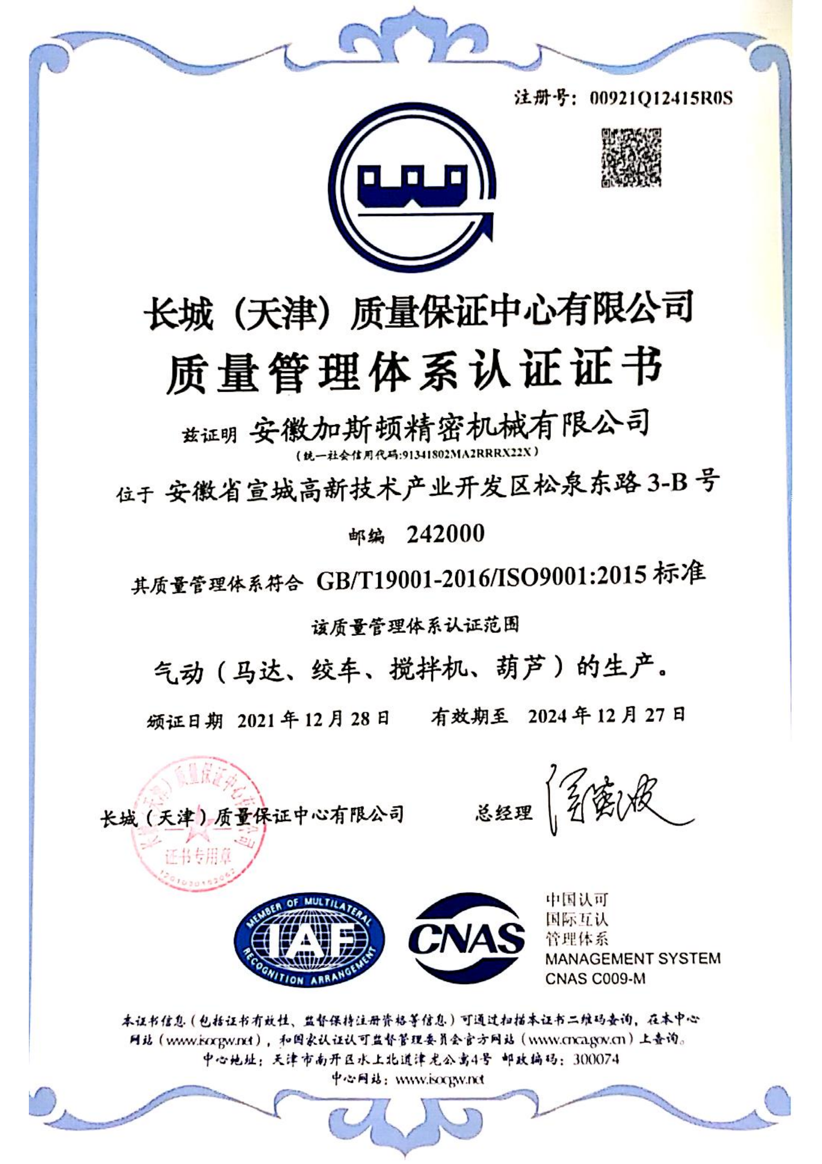 • ISQ9001證書